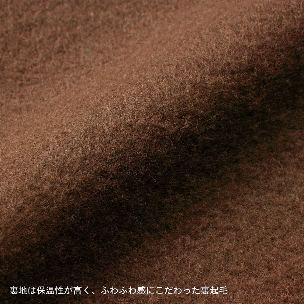 ふっくらとした裏起毛生地はなめらかな肌ざわりで保温性もバッチリです。