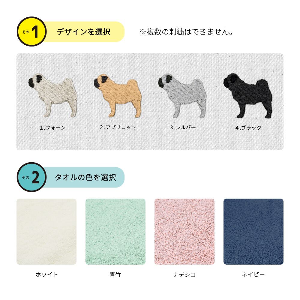 今治ブランド認定のフェイスタオルにパグのワンポイント刺繍を施しました。